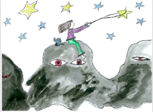 "I reach upward and lasso a star, as I ride atop the monsters of my childhood. I am strong and free spirited."